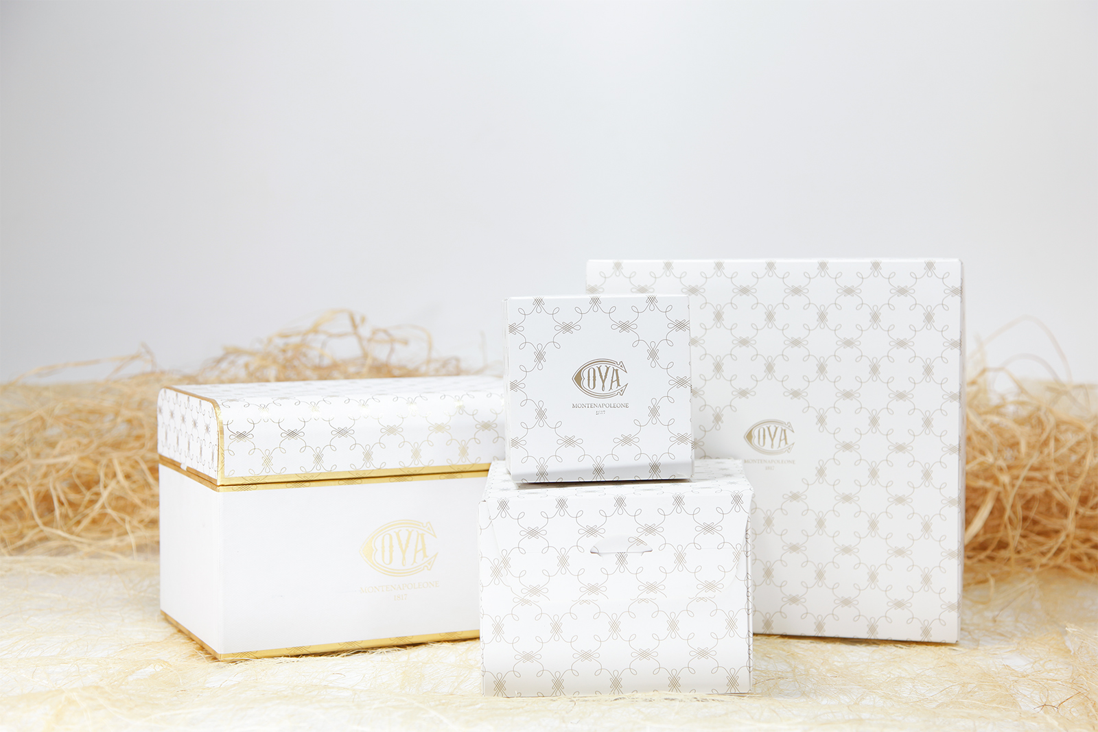 Bu kutular hem İtalyan zarafetini yansıtıyor hem de markanın köklü tarihine ve lüks algısına vurgu yapıyor. Tek parça kesilip, kolayca katlanarak hazırlanan kutular, ürünlerin ilk sunumu ile göz dolduruyor. Kutular kaliteli baskısı ve sıvaması ile mükemmel görünüyor.